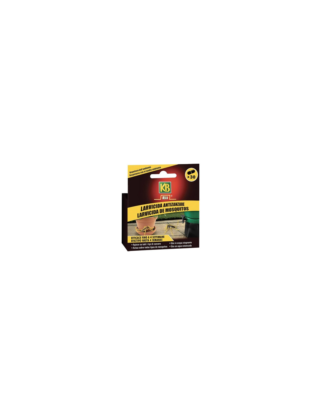 Les càpsules solubles de mosquits nexa larvicida contenen un líquid que es distribueix sobre la superfície de l'aigua impedint que les larves respirin fins a asfixiar-les.